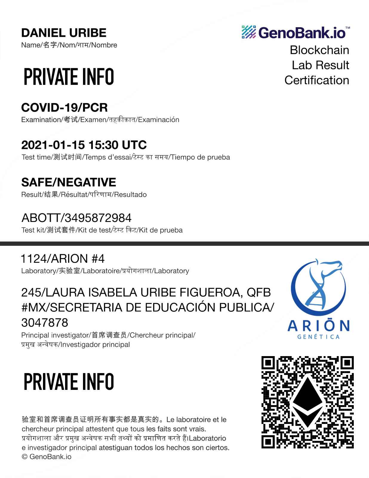 Then we share store a cryptographic summary of laboratory results on a blockchain so you can travel and go back to work safely.